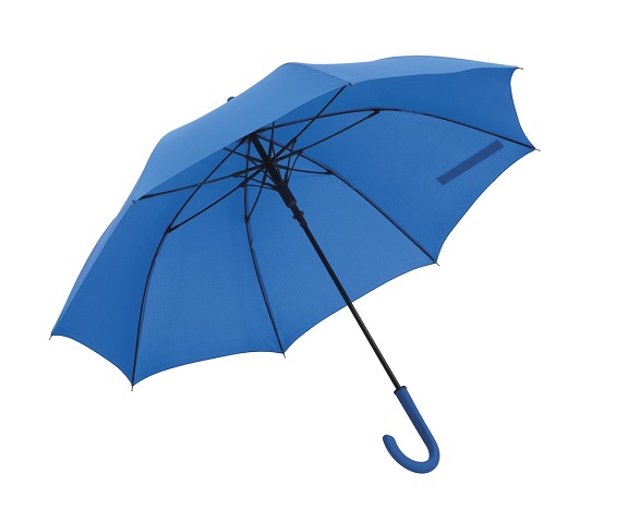 Poliéster. Ø103 cm. Altura: 84 cm Aprox. Bastón metálico, varillas en fibra de vidrio, puntas metálicas y mango curvo de plástico. Tiene un mecanismo de apertura de botón. Con cierre de velcro.